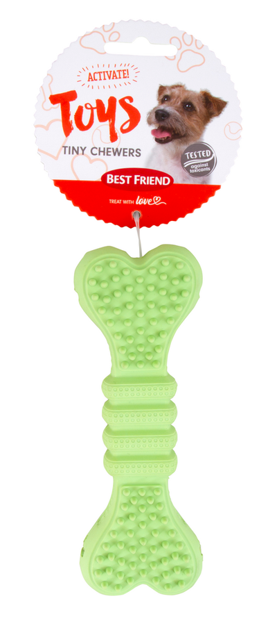 Best Friend Tiny Chewers tyggelegetøj er et nyttigt tidsfordriv for små hunde og hvalpe. Når hvalpen tygger på det holdbare gummimateriale, lindres dens kløende tandkød ved tandgennembrud. Den profilerede overflade og det fleksible bløde materiale hjælper med at opretholde tandhygiejnen ved at rense tænder og tandkød under leg. Du kan lægge godbidder ind i legetøjet for at give din hund et tidsfordriv i længere tid. Størrelse ca. 5,5 cm eller 15 x 5 cm. Et udvalg af forskelligt legetøj.