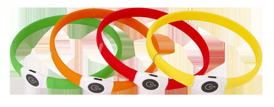 Lysbåndet må ikke fastgøres til hundesnoren. Båndet må kun bruges i overensstemmelse med denne vejledning. Hvis du overlader produktet til andre, skal du sørge for, at vedkommende kender til vejledningen og har sat sig ind i, hvordan båndet bruges korrekt. Børn må kun bruge det under opsyn af en voksen. Beskyt produktet mod varme og slag udefra eller fra at falde af, da det kan blive ødelagt. Produktet er egnet til brug ved temperaturer på mellem -20° og +40° C. Kontroller altid, hvordan produktet fungerer, før brug. Batteriet må kun oplades efter anvisningerne, ellers er der risiko for kortslutning eller elektrisk stød (se de tekniske data). Hvis båndet går i stykker eller bliver gennemvædet, så der kan trænge vand ind, skal det tages ud af brug eller kontrolleres af en elektriker, før det bruges igen. Brug: Læs brugsanvisningen grundigt igennem. Tag produktet forsigtigt ud af emballagen. Tilslut USB-kablet til båndet og USB-porten f.eks. på en computer (1). Lyset i LED-lysbåndet slukker, når det er opladet helt (opladningstid ca. 1-1,5 time). Tag mål af hunden omkring halsen med et målebånd eller ved at prøve med båndet. Båndet må ikke gøres for stramt, så der skal være plads til mindst to fingre mellem båndet og hundens hals. Klip båndet i en passende længde mellem LED-lysene i den ende, som er angivet på billedet med en saks (2). Flyt enden af plastlåsen fra den afklippede del til den nye ende af båndet (3). Nu er lyset klart til brug. Lyset tændes og slukkes ved at trykke på ON/OFF-knappen (4). Lyset kan med samme knap indstilles til at lyse konstant eller blinke. Lyset varer i ca. 2-4 timer uden genopladning, alt efter brug. Lyset kan ses på ca. 500 m afstand, afhængig af opladningen og faktorerne i omgivelserne.