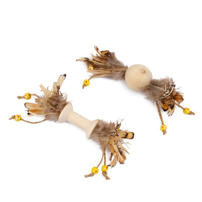 Det smukke Best Friend Wood Roller kattelegetøj er udelukkende lavet af naturlige materialer. Bløde fjer, knitrende bast og træperler indbyder katten til at lege. Dette legetøj er fantastisk for katten at snige sig efter og jage! Legetøjet måler 17 cm. Et udvalg af forskelligt legetøj.