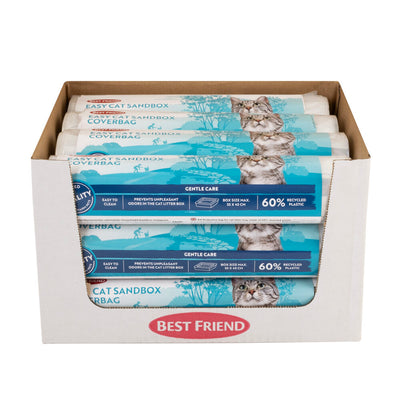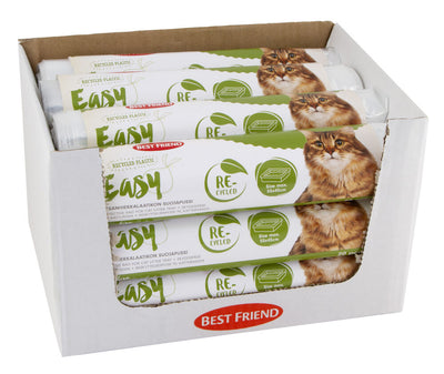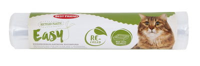 Best Friend Easy beskyttelsespose til kattebakken er fremstillet af 60 % genanvendt plast. Udnyttelse af genanvendt plast er et bæredygtigt valg, der mindsker miljøbelastningen. Genanvendt plast i engangsposer er det mest miljøvenlige valg! Rullen med Easy beskyttelsesposer er emballeret i et miljøvenligt FSC®-certificeret papiromslag og varerne leveres til butikkerne i FSC®-certificerede emballagekasser. Best Friend Easy beskyttelsesposen til kattebakken lægges i bunden af den rengjorte bakke, som fyldes med kattegrus. Det er nemt og hygiejnisk at skifte grus efter behov, da det brugte grus med posen fjernes fra bakken og erstattes med en ny pose og nyt grus. Det brugte grus med posen bortskaffes med restaffald. Bakken skal indimellem vaskes af og desinficeres. Posen passer til kattebakker, som ikke er større end 55 x 45 cm. Pakken indeholder 20 beskyttelsesposer. Kattefamiliens hverdag bliver nemmere med hygiejneartikler af høj kvalitet til katten. En nem rengøring af udstyret og valg af passende grus sikrer, at katten besørger det rette sted og at der ikke spredes ubehagelige lugte i hjemmet.