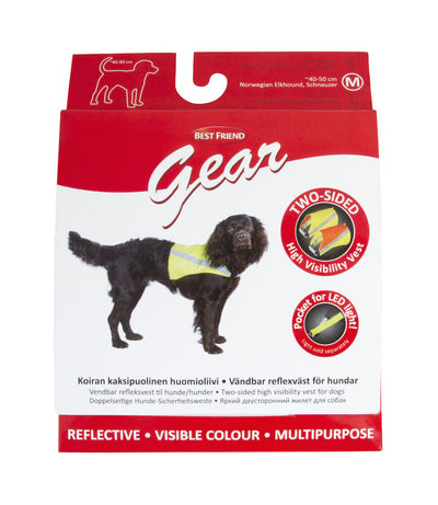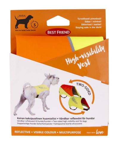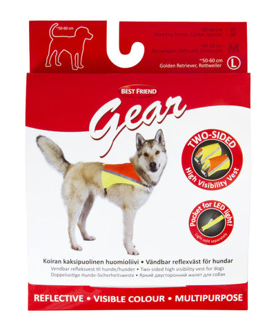 Den vendbare Best Friend sikkerhedsvest er en multifunktionel vest til hunde. Vestens refleksfarver og effektive reflekser øger synligheden, når man bevæger sig i mørke. Vesten er fremstillet af vandafvisende letvægtsmateriale. Den vendbare vest har klare farver og effektive reflekser på begge sider samt stropper, der kan tilpasses, så den hurtigt kommer til at sidde rigtigt på hunden. Der kan hægtes en blinkende lygte i løkken på rygstykket af vesten for at øge synligheden.