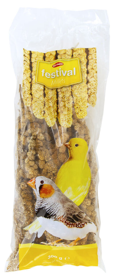 Hirsekolber er en lækkerbisken for de fleste burfugle, men især for kanariefugle, undulater, finker og parakitter. Hæng en hirsekolbe op i burets tag og skift den ud, när den er brugt op. Er desuden ganske velegnet til vildfugle.