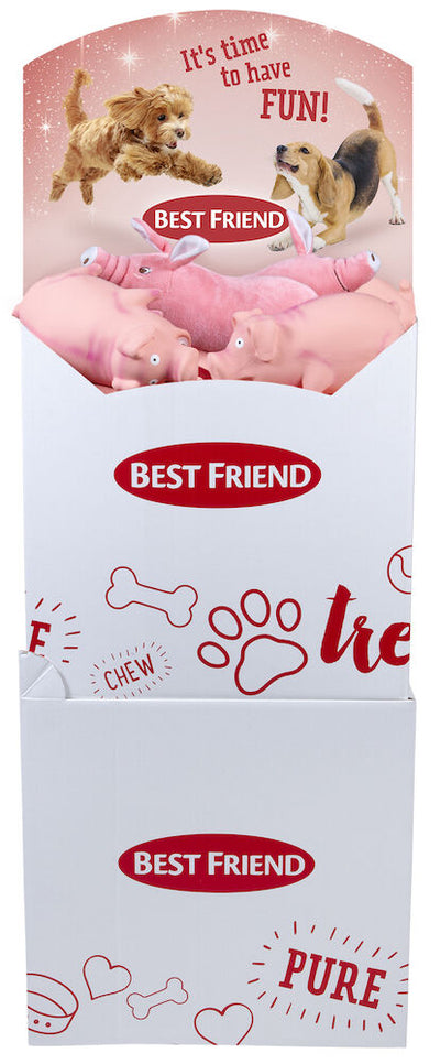 Best Friend Fun grisen er svær at modstå! Den bløde og autentiske plysgris har piv indeni. Den buttede latexgris grynter ligesom en rigtig gris! Vælg din egen favorit! Legetøjsstørrelse ca. 20-24 cm. Assorteret. Når hunden leger med ejeren, lærer den noget nyt, øver sine motoriske færdigheder og lærer allerede som hvalp at tolke flokkens adfærd og rangorden. Det bløde og pivende legetøj, som er ideelt til indendørs leg, er også et fortræffeligt bytte i de jagtlege, som de fleste hunde elsker. Best Friend tester regelmæssigt legetøjet for skadelige kemikalier. Der skal holdes øje med kæledyrene, mens de leger, og ødelagt legetøj skal fjernes.