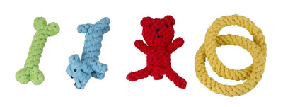 Best Friend Ropetoy legetøjet må der bides i! De slidstærke og sjove legetøjsfigurer af reb passer til små og mellemstore hunde både som tyggelegetøj og til apport- eller trækkelege. Størrelse 15-30 cm. Assorteret. Hunde har et medfødt behov for at tygge. Især i hvalpealderen i forbindelse med skift af tænderne er det vigtigt, at hunden får noget sikkert at tygge på. Når hunden tygger på den rette slags legetøj, forebygger det plak og tandsten effektivt og fremmer tændernes og tandkødets sundhed også når den bliver ældre. Best Friend tester regelmæssigt legetøjet for skadelige kemikalier. Der skal holdes øje med kæledyrene, mens de leger, og ødelagt legetøj skal fjernes.