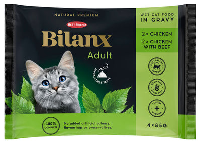 Best Friend Bilanx Adult kana & nauta lajitelma kastikkeessa 4x85 g