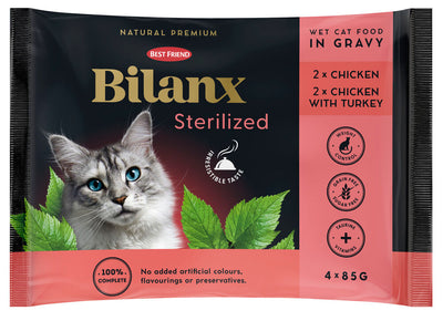 Best Friend Bilanx Sterilized kana & kalkkuna lajitelma kastikkeessa 4x85 g