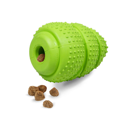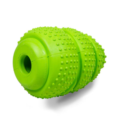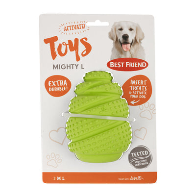 Best Friend Mighty L pirteän värinen koiran aktivointilelu ehkäisee koiran turhautumista tarjoamalla koiralle aivojumppaa ja ajanvietettä namien etsinnän parissa. Piilota makupaloja tai ruokaa lelun sisään ja anna koirasi käyttää kekseliäisyyttään, kunka saada ne ulos! Luonnonkumista valmistettu lelu vaihtaa pomppiessaan suuntaa arvaamattomasti, mikä tekee leikistä vieläkin hauskempaa. Aktivointipallon erittäin kestävä materiaali soveltuu innokkaimmankin etsijän purukalustolle ja sen pinnassa olevat nystyrät hierovat ikeniä ja auttavat puhdistamaan hampaita herkkujen etsinnän lomassa. Vinkki: Täytä aktivointilelu esimerkiksi märkäruoalla ja pakasta - lelu tarjoaa koiralle hauskaa aktiviteettia entistä pidempään ja sopii myös kuuman kesäpäivän viilentäviin herkutteluhetkiin! Koko 11 x 7,7 cm soveltuu keskikokoisille ja suurille koirille.