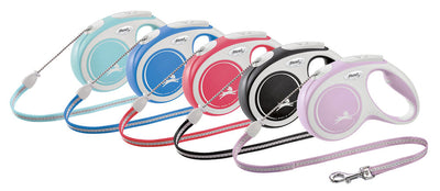 Uudistuneessa Flexi New Comfort -taluttimessa on uusi jarrumekanismi, joka toimii nopeasti ja varmasti - juuri silloin kuin sen pitääkin. Innovatiivinen nauhanohjuri huolehtii, ettei hihna jumitu ja aiheuta kiusallisia tilanteita.Taluttimen grip-materiaali on kädessä mukavan ja tukevan tuntuinen. Kahvan koko on säädettävissa, mikä on erittäin kätevä ominaisuus, jos perheessä on monta koiranulkoiluttajaa. Painoraja max 20 kg.