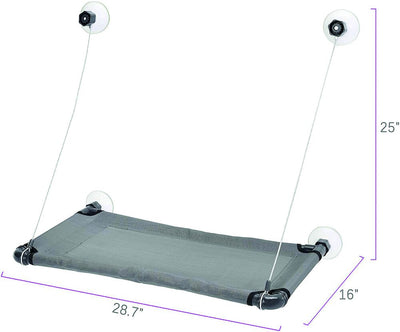 M-PETS Horizon on helposti ikkunaan asennettava näköalapaikka kissoille. Napakat, kiertämällä kiristettävät imukupit kiinnittävät pedin lasiin tukevasti jälkiä jättämättä. Puremisen kestävät vaijerit ja irrotettava, puhdistettava päällys. Paino max 10 kg.