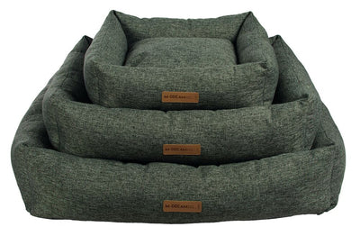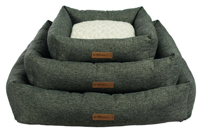 M-PETS Oleron pedin tummaharmaa väri ja keinonahkaiset yksityiskohdat tekevät siitä todella tyylikkään. Pedissä oleva tyyny on käännettävä, jolloin toinen puoli tyyny on ihanan pörröistä keinoturkista. Muhkean pedin pohjassa on vetoketju, joten päällinen on helppo irrottaa ja pestä. Materiaali kestää 30 asteen konepesun. Pohjassa olevat liukuesteet pitävät pedin hyvin paikoillaan.
