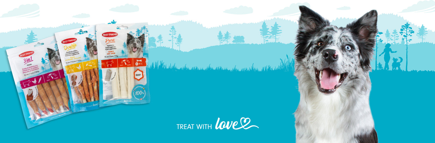 The products in our new chewing bone concept have been carefully selected based on the wishes of Nordic pet families and especially the preferences of their dogs. Every chew in the selection has been enthusiastically sniffed, tested and tasted by our own office dogs and found to be deliciously well working ones by our tailwaggers! So, we know what tickles your pet's taste buds! We at Best Friend have decades of experience in our work and we are also pet owners. That's exactly why we know how to develop and introduce the right products in our selection that your pet will fall in love with!