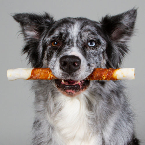 Dogs have an innate need to chew. By chewing, dogs explore the world around them, exercise their jaw muscles and take care of their teeth. Dogs also unload e.g. stress, anxiety and boredom by chewing. So what's a better pastime for dogs than gnawing on delicious dog chews?