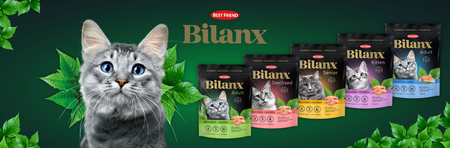 Med ett mjau av spänning presenterar vi vårt förnyade Bilanx-sortiment av kattfoder, tillverkat med nordisk kärlek och expertis för ditt husdjur. Du kan vara säker på att dessa foder har utvecklats med kattens näringsbehov i åtanke. Dessa högkvalitativa torrfoder har hög kötthalt och innehåller inga onödiga tillsatser. När du ger Bilanx torrfoder till din katt kommer du att uppleva hur din katt blir förälskad i det oemotståndligt goda och näringsrika fodret.