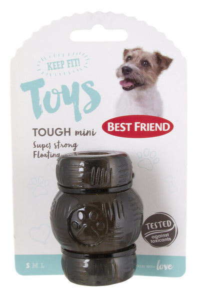 Best Friend Tough Mini är en multifunktionsleksak för små hundar. Den superhållbara hundleksaken passar utmärkt för hundar med starkt bett. Leksaken flyter också, så den är också utmärkt för apportlekar. Det går också att gömma godbitar inuti vissa leksaker! 100% hållbarhetsgaranti. Leksakens storlek 6-8,5 cm (+ rep). I sortimentet finns olika leksaker. Hundar har ett medfött behov att tugga. Speciellt i valpåldern, när valpen byter tänder, är det viktigt att hunden får något säkert att tugga på. Att tugga rätt typ av leksaker förhindrar effektivt plack- och tandstensbildning och främjar tändernas och tandköttets välbefinnande även vid en senare ålder. Best Friend testar regelbundet sina leksaker för skadliga kemikalier. Husdjuret bör övervakas under leken och en trasig leksak bör tas ur bruk.