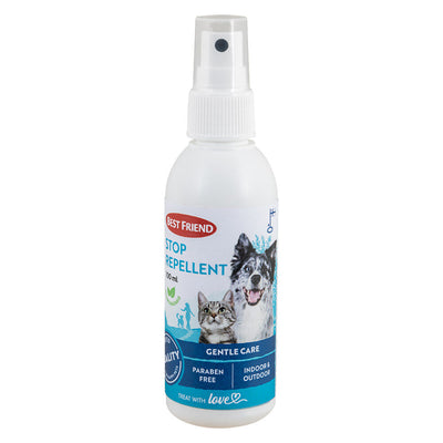 Lukten av det i Finland tillverkade Best Friend STOP-avstötningsmedlet får katter och hundar att undvika platser som behandlats med medlet. Produkten kan användas både inne och ute. Inomhus varar effekten 2-4 veckor. Produkten är tillverkad av säkra och miljövänliga, biologiskt nedbrytbara ingredienser. Det är ändå bra att hålla produkten utom räckhåll för barn. Om STOP-medlet hamnar i ögonen, skölj noggrant med vatten. Innehåller inte parabener. Sprutflaska 100 ml. Nyckelflaggprodukt.